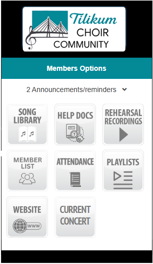 FIRST, be sure you are reading this on your phone, not your laptop or desktop computer. If you are not, then, on your phone/tablet, bring up this webpage. (Go to your browser (e.g. Safari, Chrome, Edge, etc.), go the the tilikumchoir.org website and select the Members -> App menu option.)