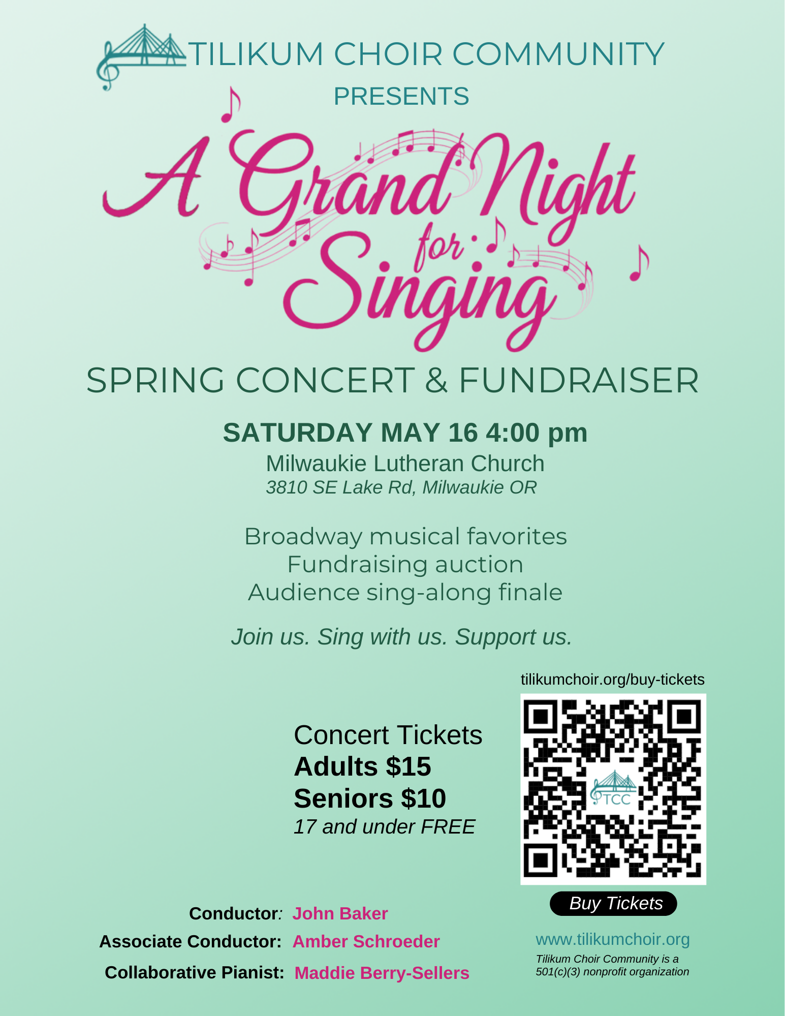 | Description: | The magic of Broadway! Experience a concert of musical theater favorites with an audience sing-along finale. Support us at the auction.