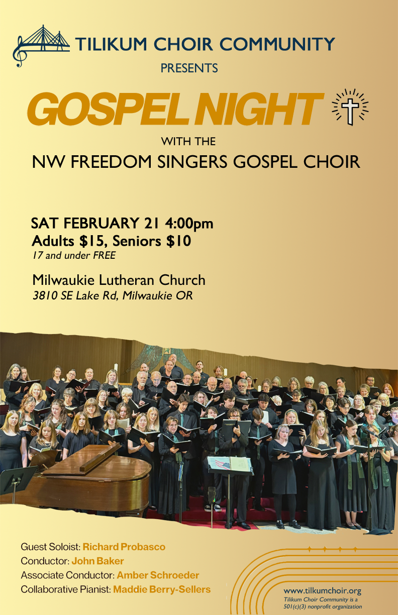 The Tilikum Choir Community is directed by John Baker and Amber Schroeder.
